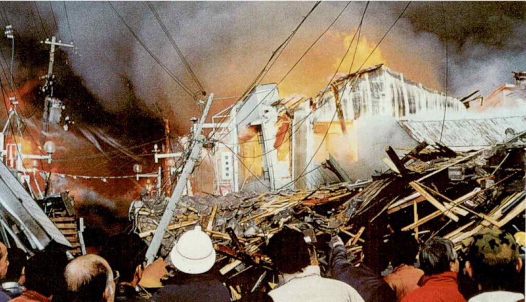 阪神・淡路大震災では国内で初めて震度7を観測する地震でした。この地震による建物の倒壊や家具の転倒で命を落とした人がたくさんいます。さらに、電気やガスの復旧に伴う火災が原因で大規模な火災へとつながりました。