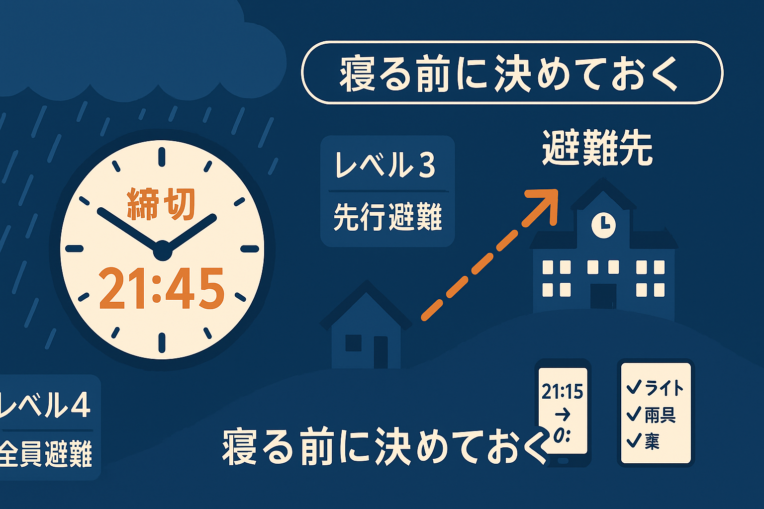 - 避難所や避難経路を事前に確認しておく